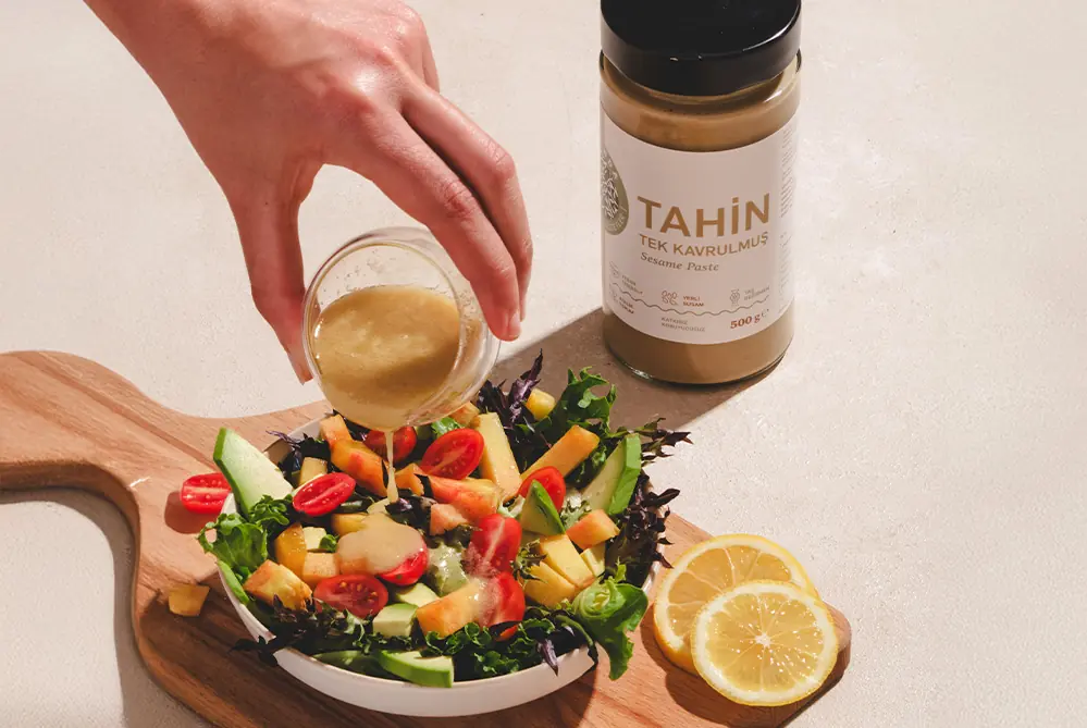 Tahin, susam tohumlarının taş değirmende öğütülmesiyle elde edilen besleyici ve doğal bir gıdadır. Sağlıklı yağlar, bitkisel protein ve kalsiyum açısından zengindir; bu nedenle enerji verir ve uzun süre tokluk hissi sağlar. Kahvaltılardan sos ve tatlı tariflerine kadar pek çok alanda kullanılabilir. Ayrıca kemik sağlığını destekleyici besin değerleriyle öne çıkar. |